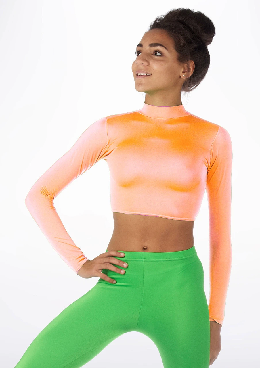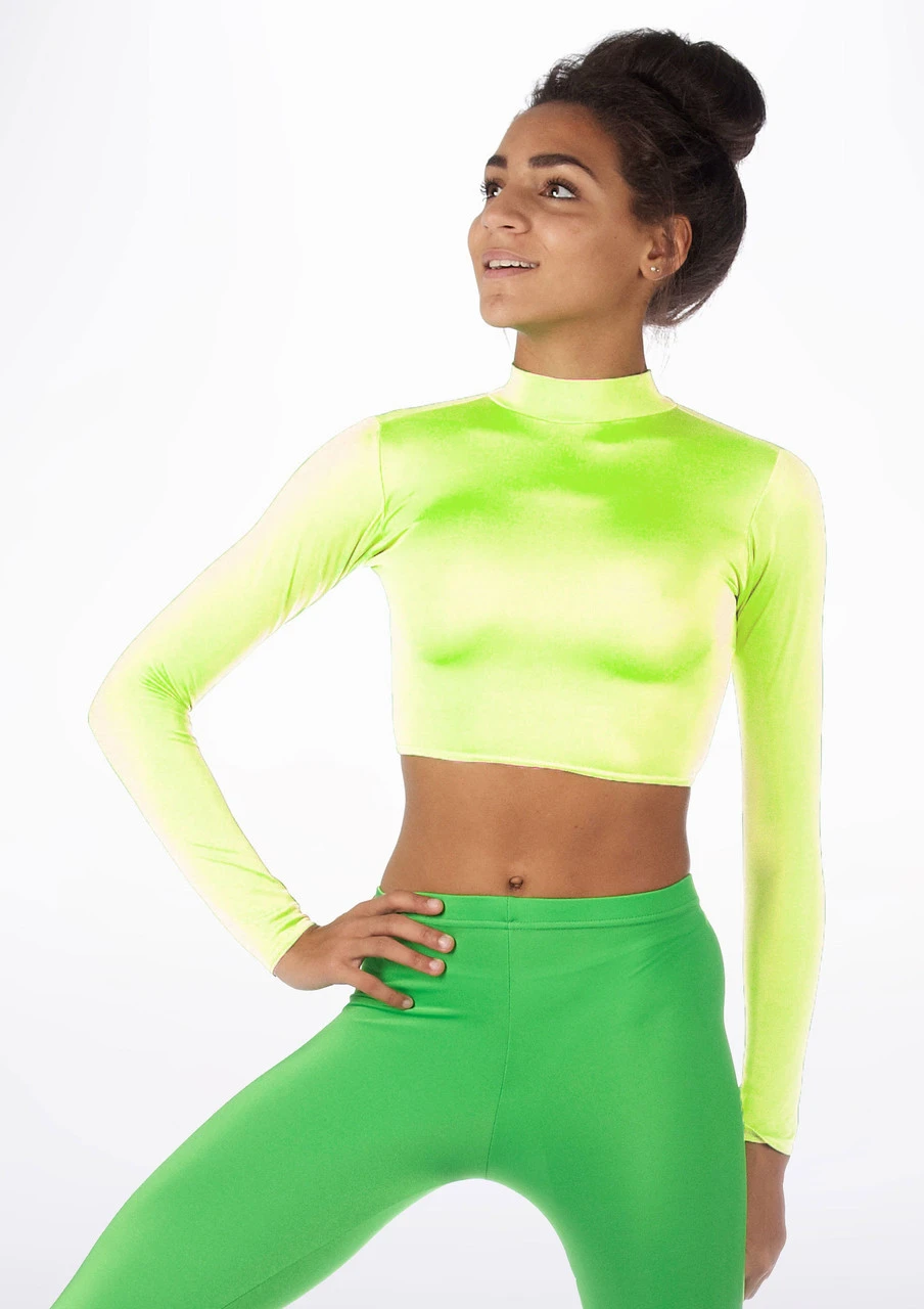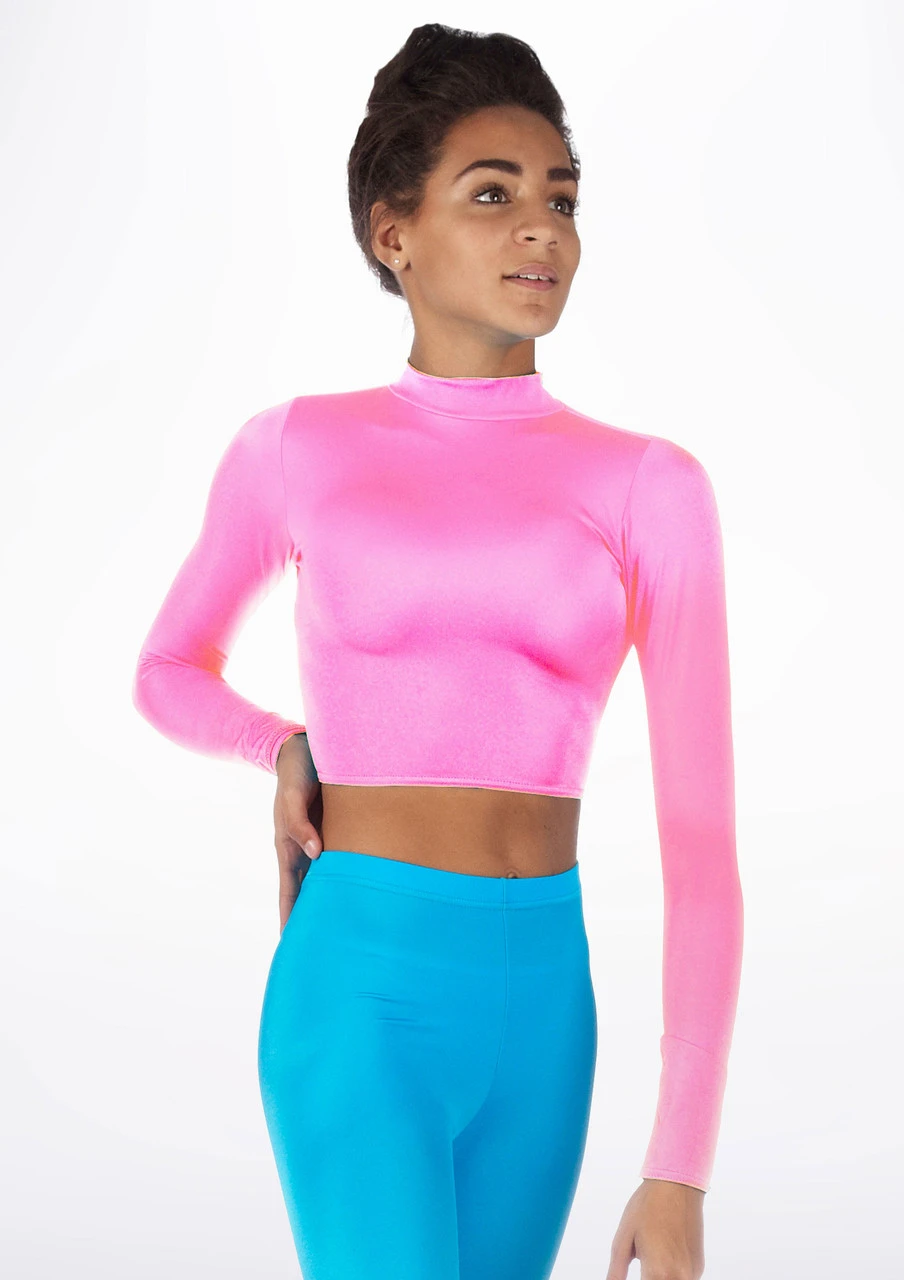An elegant new long sleeved turtleneck crop top from the Alegra Basic’s collection! With a keyhole back design this crop top is great for dance class, gymnastics or the foundation to a show costume or fancy dress outfit. The shiny stretch material comes in a huge choice of colours, with a selection of pants to mix and match.