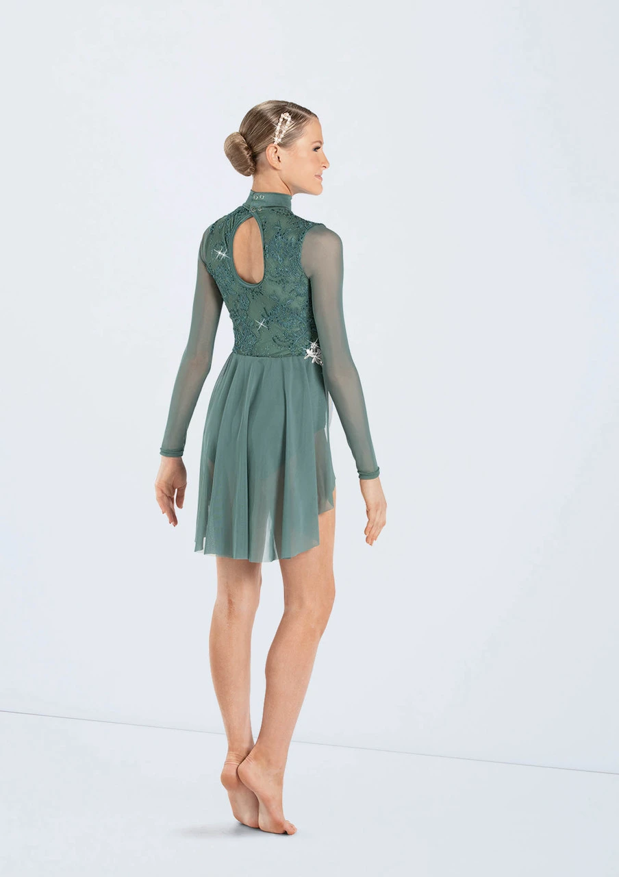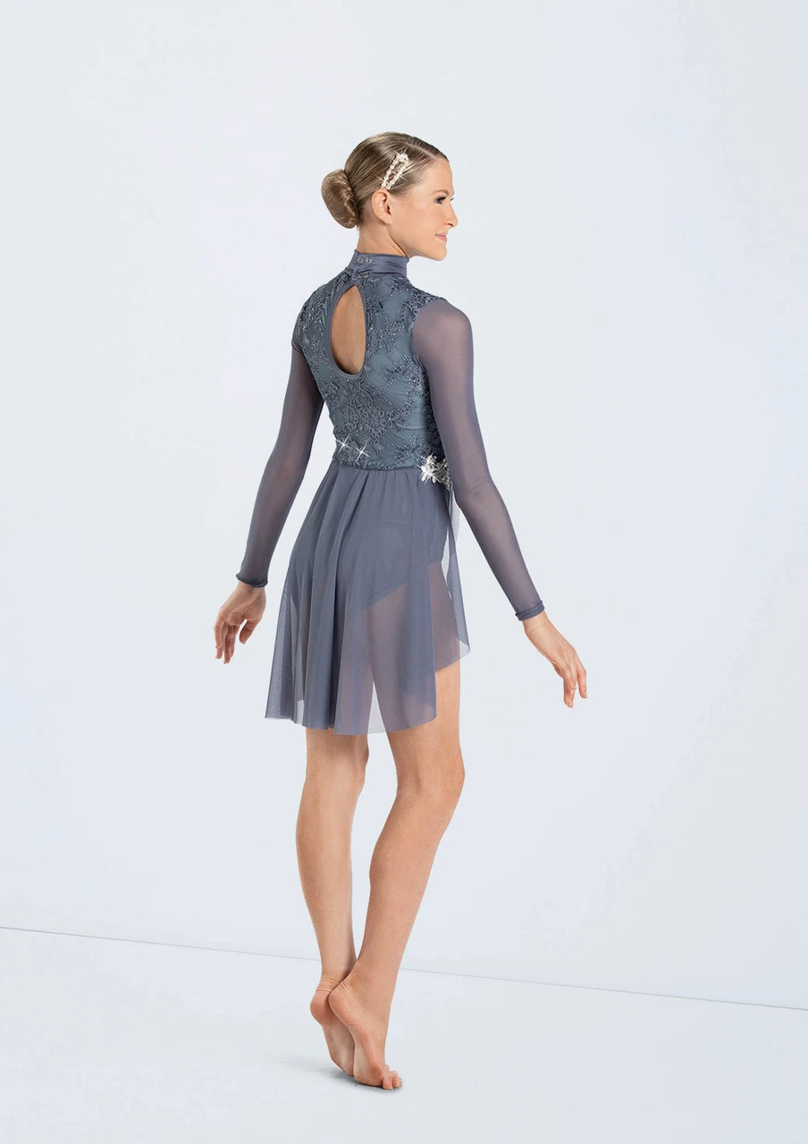 -Draped front overlay and long sleeves are power mesh